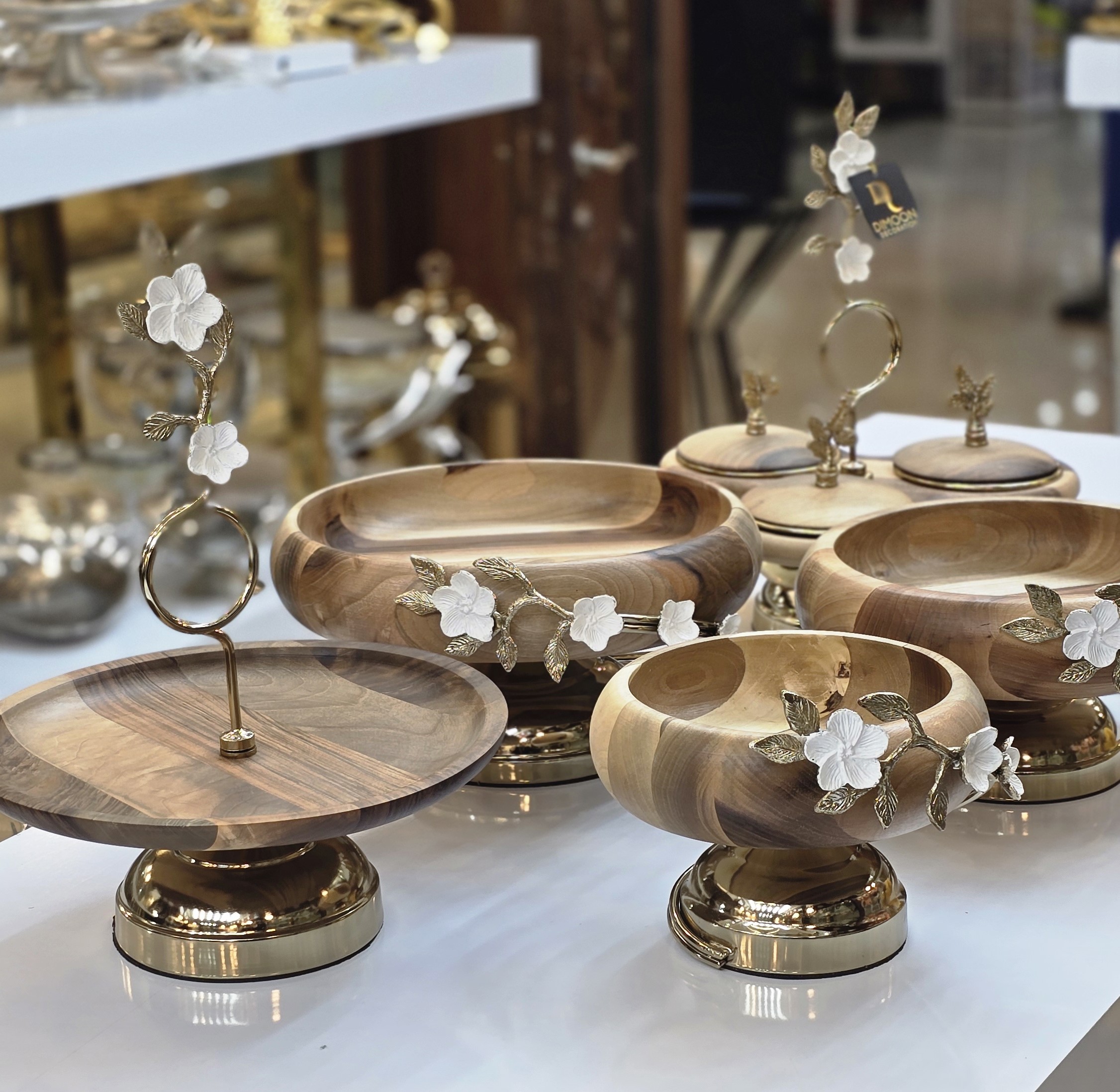 دستهبندی: سرویس پذیراییجنس: چوب گردوجزئیات: پنج تکه شامل آجیل خوری شرینی خوری میوه خوری تنقلات خوری و شکلات خوری