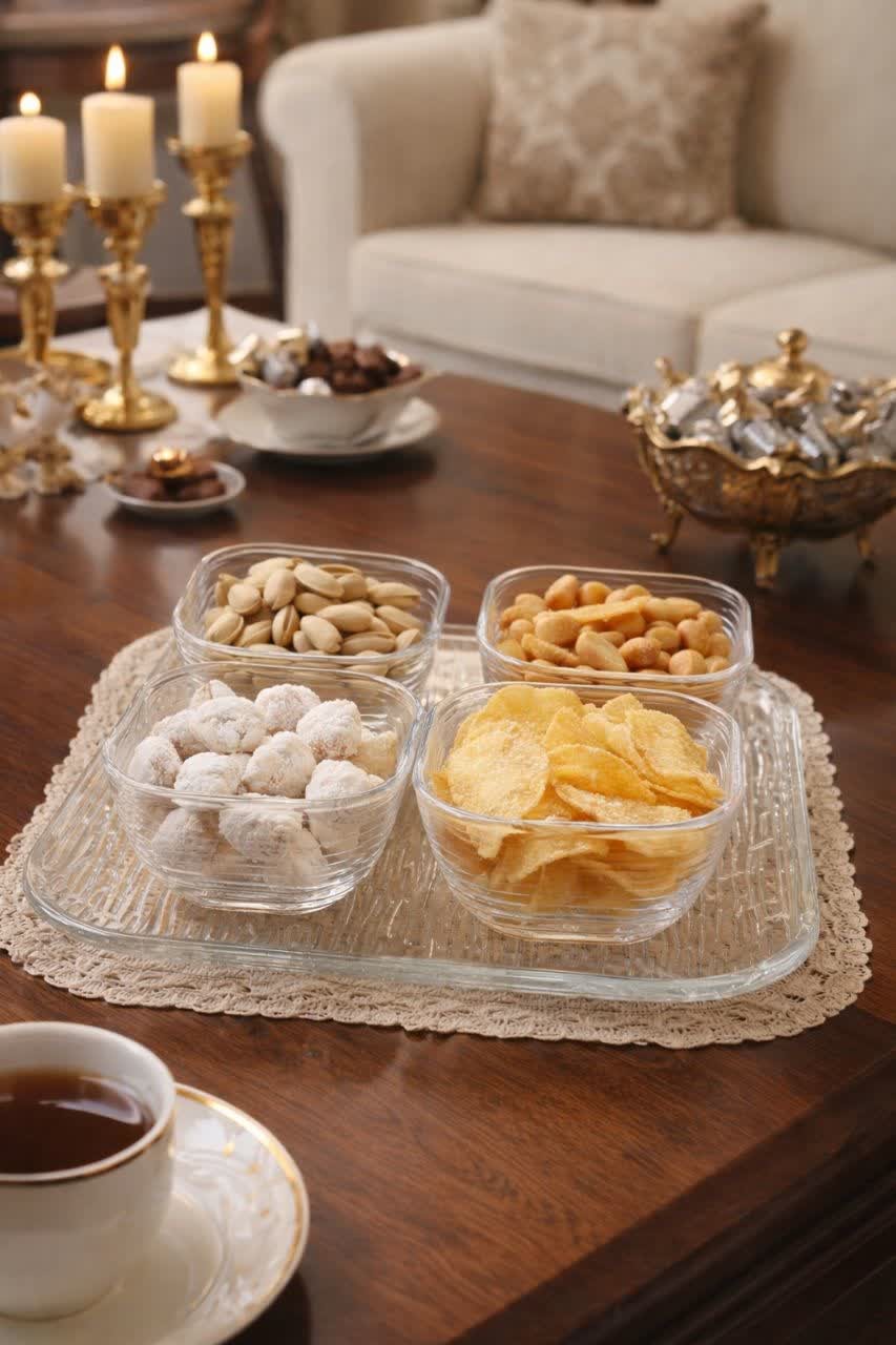 دستهبندی: آشپزخانهجنس: بلور وارداتی درجه یکجزئیات: دارای دیس زیر پیاله و جعبهمورد استفاده: جهت سرو تنقلات و آجیل