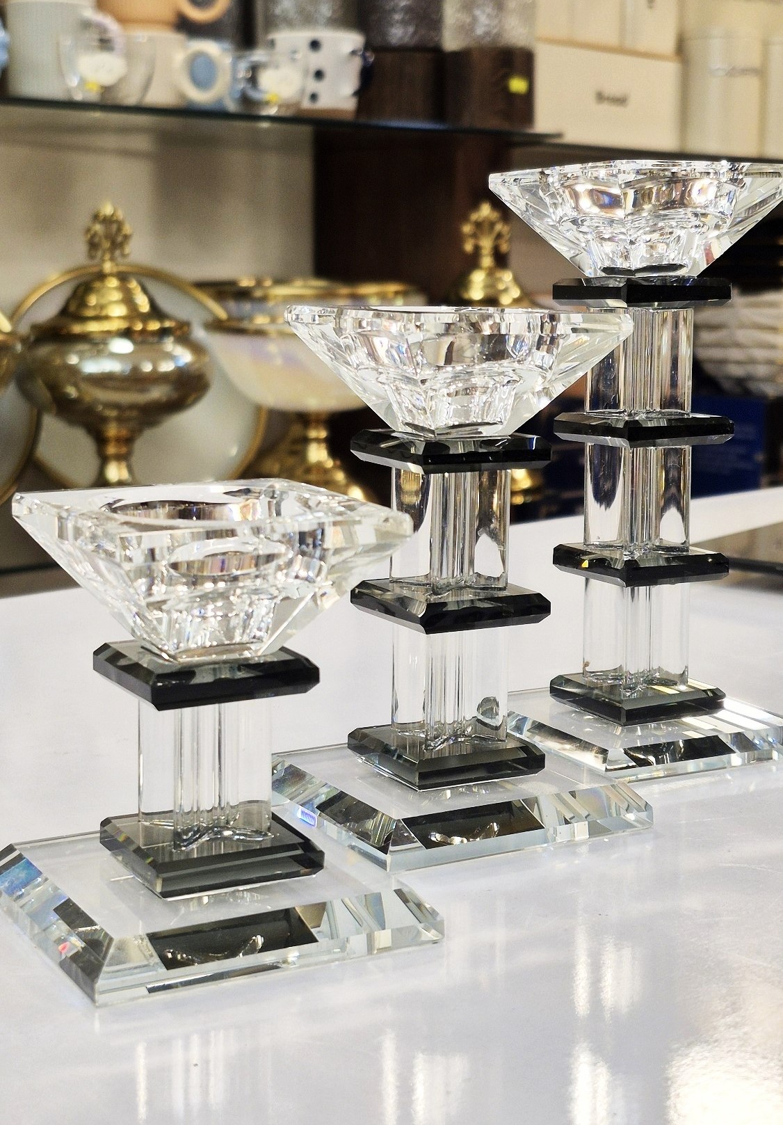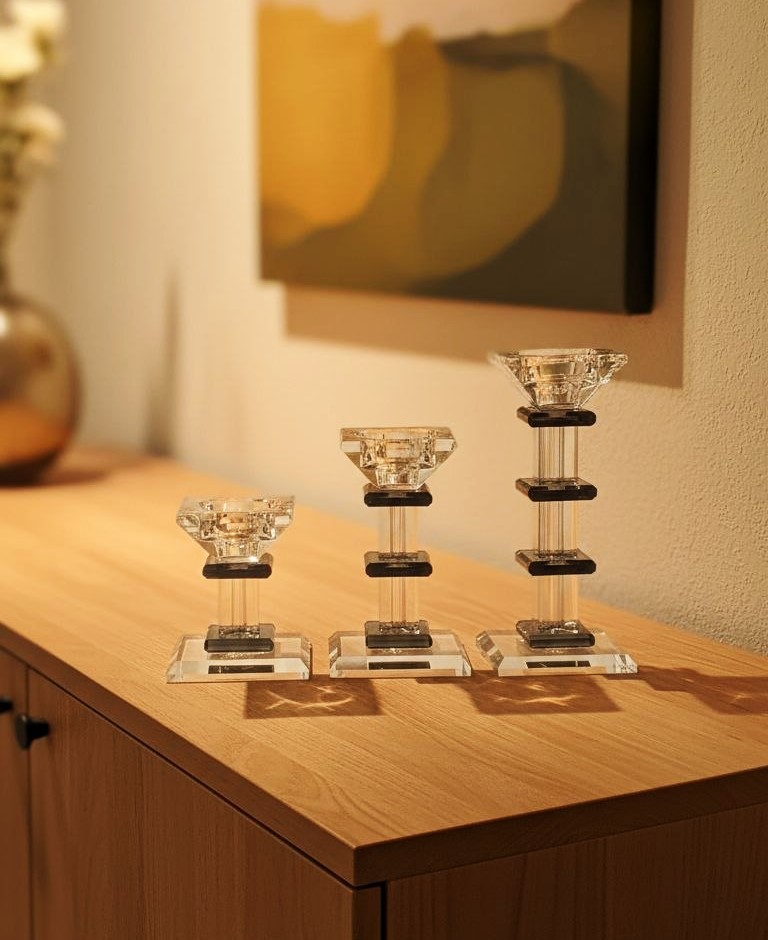 جنسکریستال وارداتیرنگمشکی و بی رنگمدلپله ایتعدادسه تاییجزئیاتهر شمعدان دارای جعبه بسیار شیک بصورت جداگانه